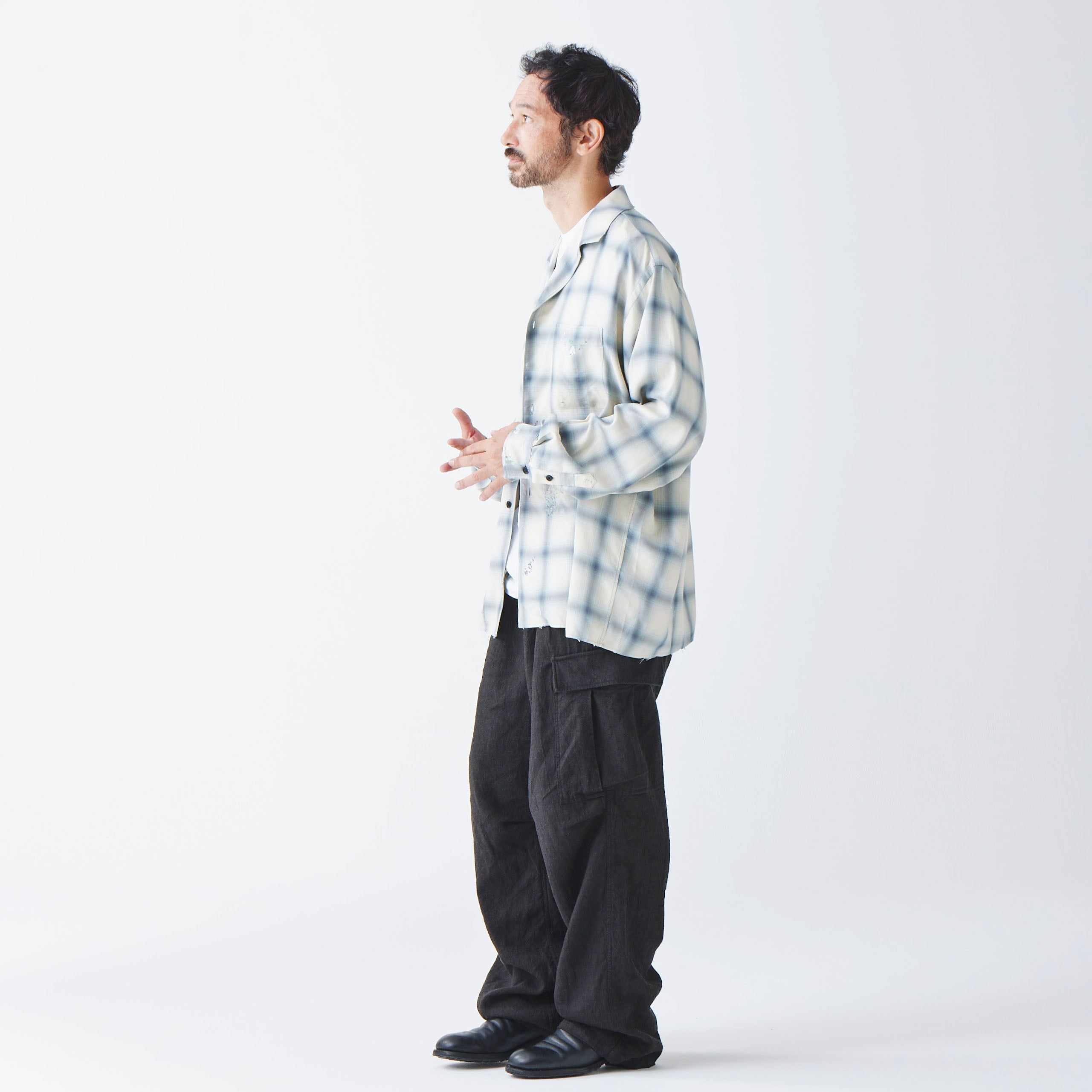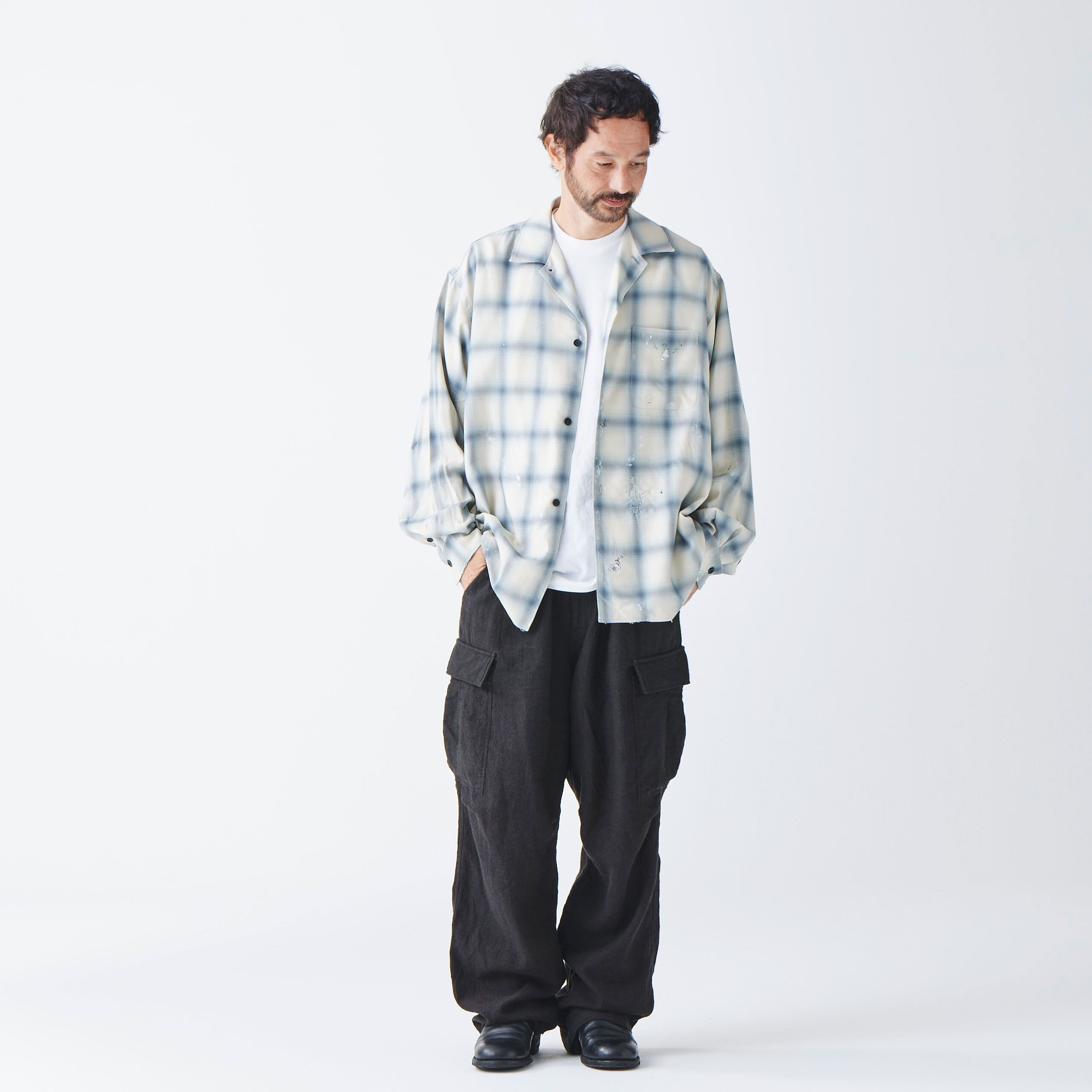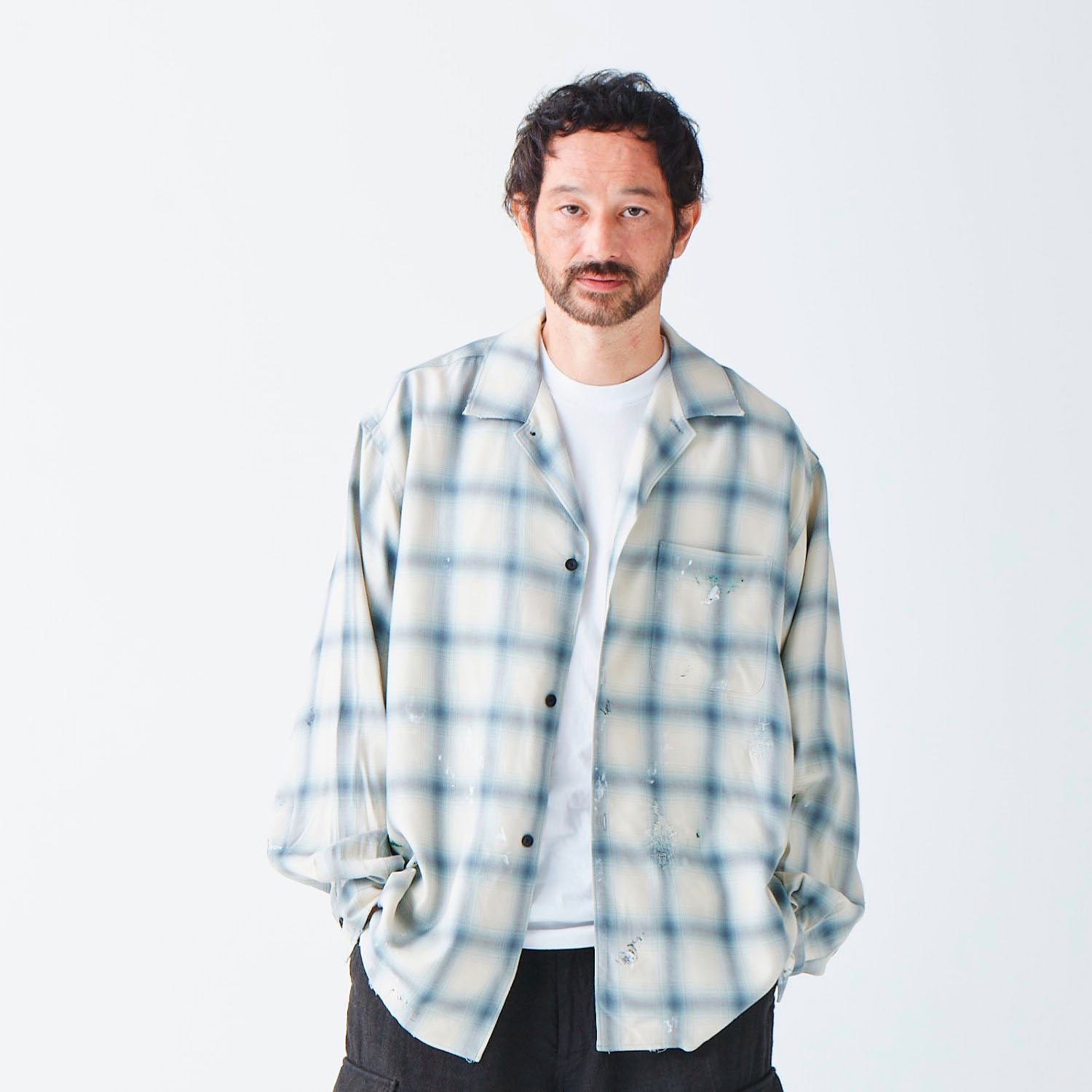 レーヨン素材のオンブレーチェックオープンカラーシャツです。