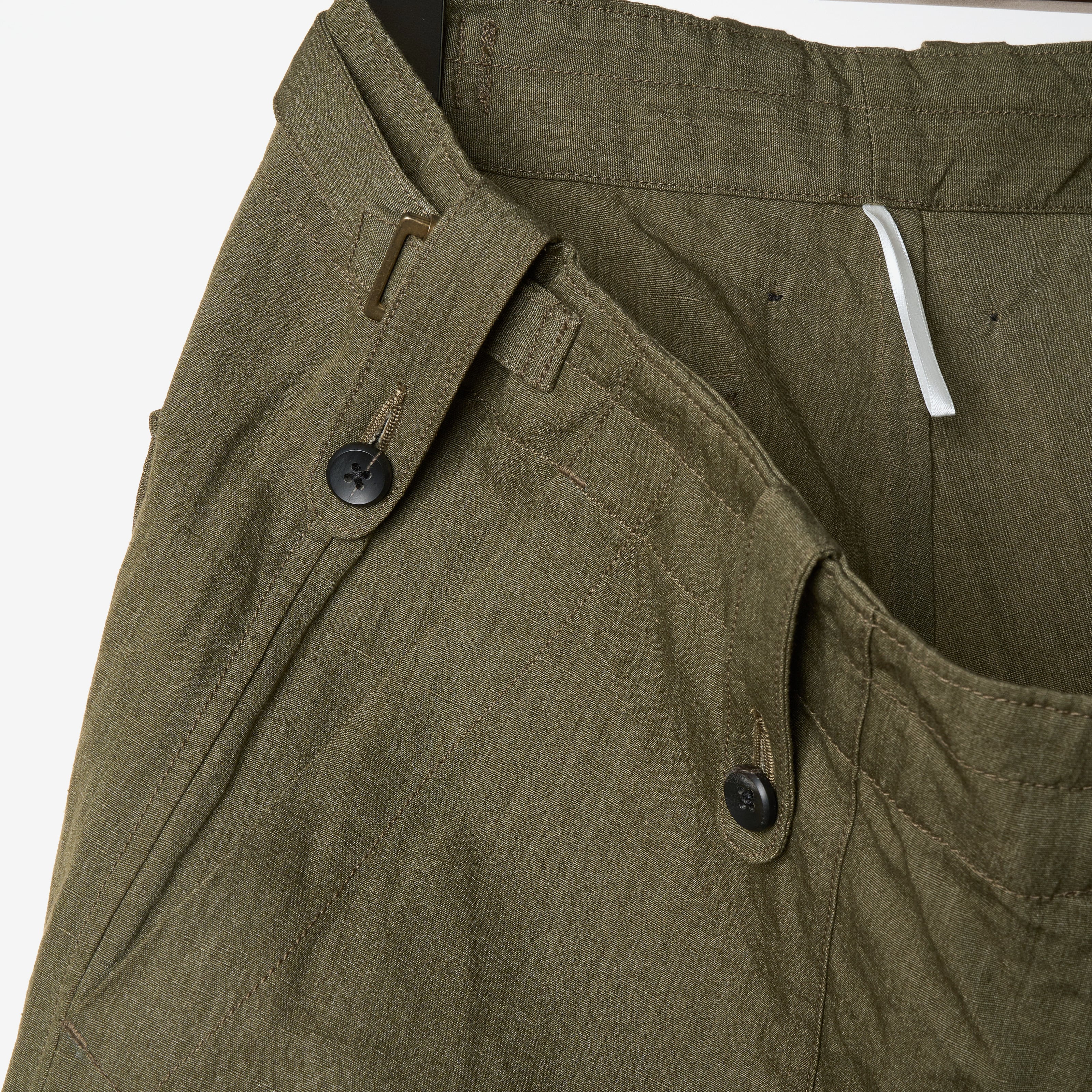 ベルトレスとしても着用可能。背面のポケットは右側のみ、フラップが付いている。